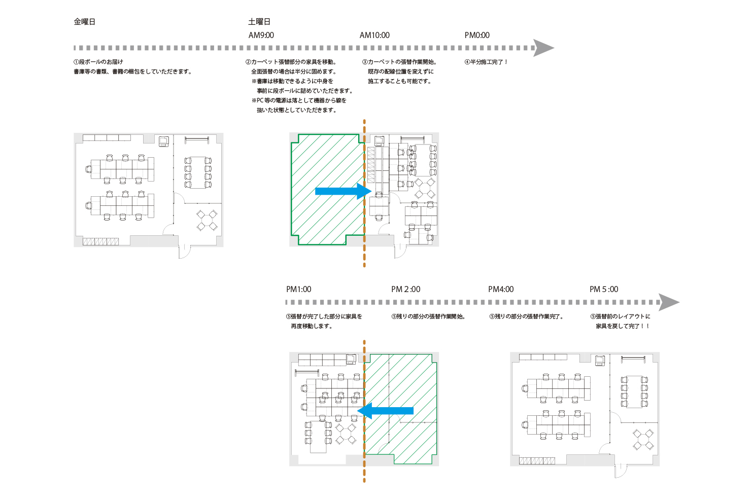 カーペットの貼り替えの流れ
