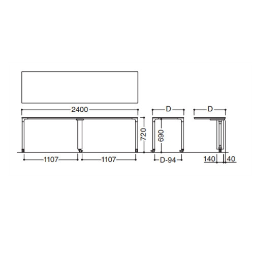 | サイズ | 幅:2400mm / 奥行:550mm / 高さ:720mm
