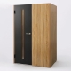ドア:30mm厚パーティクルボード+低圧メラミン+アクリル