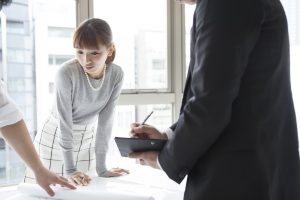 また、一般に女性は男性に比べおしゃべり好きな人が多く、イメージを言葉で表現したり、潜在的なニーズを引き出したりと、コミュニケーション力に優れているとも言えます。その為、オフィス空間デザインでは女性スタッフやプランナーがお客様との打ち合わせに入り、女性ならではの細やかな視点でひとつずつお客様のご要望にお応えいたします。
